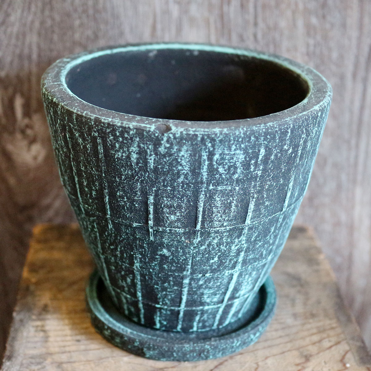 受け皿がセットになった日本製の植木鉢です。