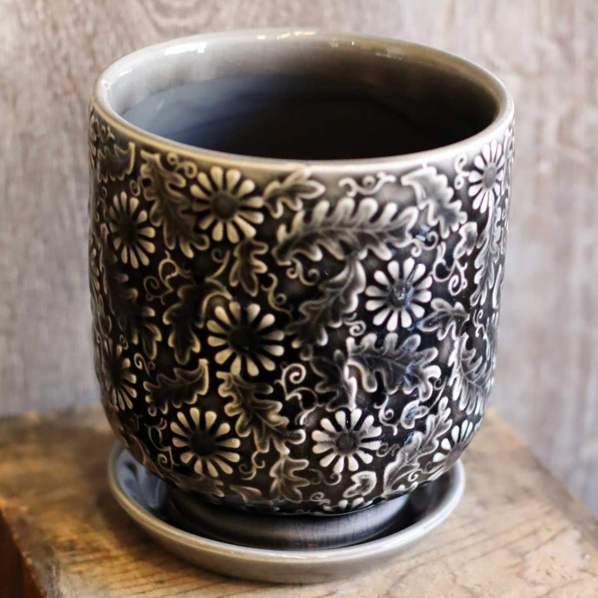 受け皿がセットになった植木鉢です。