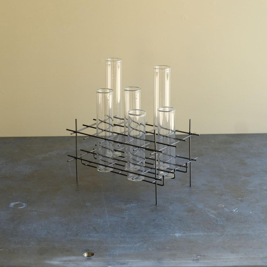 3種の長さの異なるガラスチューブとスタンドがセットになった一輪挿し立てです。